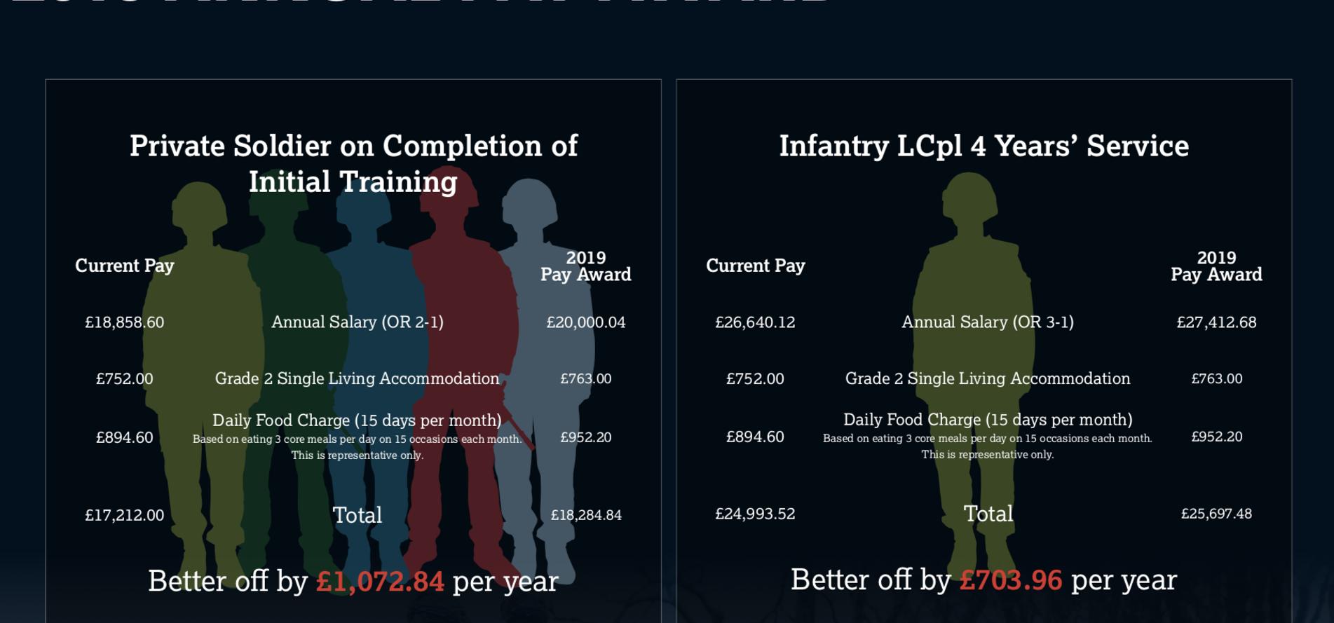 Basic Pay Chart for Active Duty Soldiers This pay scale reflects Basic Pay only and does not include bonuses. You will need to meet the entry requirements of the Nursing BSc Hons at Birmingham City University. Starting salaries for trained Soldiers will increase to 20000 per annum with immediate effect and will also be backdated.