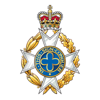 The Royal Army Chaplains Department Location of story. The Museum of Army Chaplaincy houses the historical collection of Royal Army Chaplains Department. Bone china plate white body border with purple line and enamelled cap badge device with motto In This Sign Conquer.