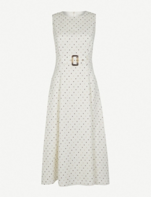 This satiny belted midi dress is made even more charming with jacquard-woven polka dots peppering the flowy A-line silhouette. 59 height 335 bust 235 waist 345 hips wearing a Ted Baker size 2 or. Fits true to size order your normal size.